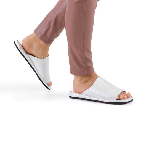 Класична модель відкритих жіночих капців із м’якої перламутрової шкіри. Легка та безшумна підошва з EVA дозволить вийти у капцях навіть на відкриту терасу.