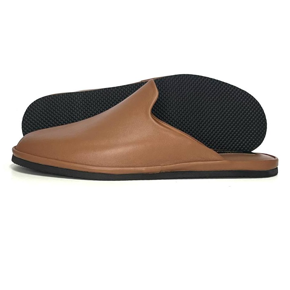 Класична модель закритих жіночих капців з гладкої бежевої шкіри. Дана модель капців має фігурну союзку, завдяки якій впевненно тримається на стопі. Легка і безшумна підошва з EVA дозволить вийти в капцях навіть на відкриту терасу.
