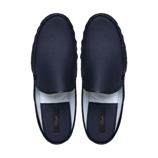 Стилізовані під мокасини домашні капці з міцної та еластичної шкіри флотар. Підошва доповнена накладками з EVA, що надає практичності.