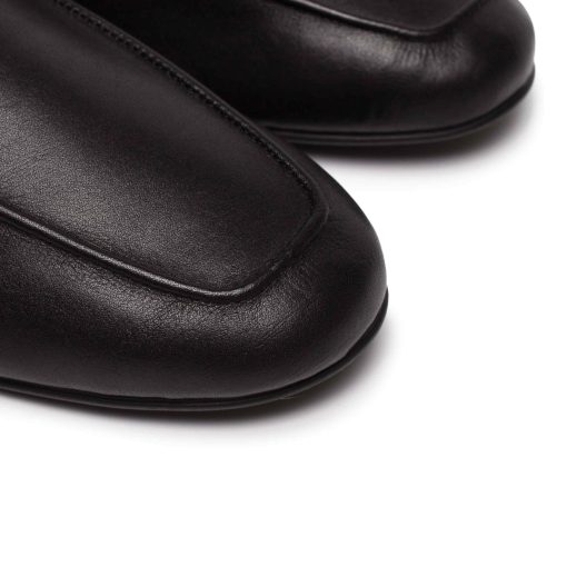 Вишукані жіночі лофери чорного кольору. Виконані з м’ягкої та еластичної шкірі. Конструкція данної моделі візуально робить іі більш стрункою та витонченою. Особливу увагу приділили матеріалу підошви, завдяки гнучкості та еластичності обраної гуми- лофери вийшли дуже комфортними, в них ногам зручно протягом всього дня.