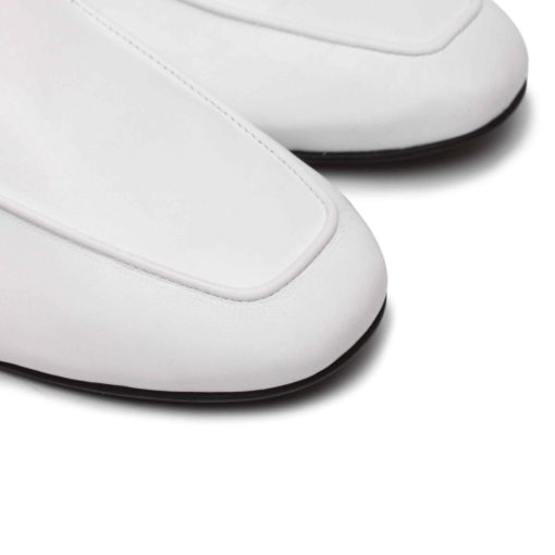 Вишукані жіночі лофери білого кольору. Виконані з м’ягкої та еластичної шкірі. Конструкція данної моделі візуально робить іі більш стрункою та витонченою. Особливу увагу приділили матеріалу підошви, завдяки гнучкості та еластичності обраної гуми- лофери вийшли дуже комфортними, в них ногам зручно протягом всього дня.