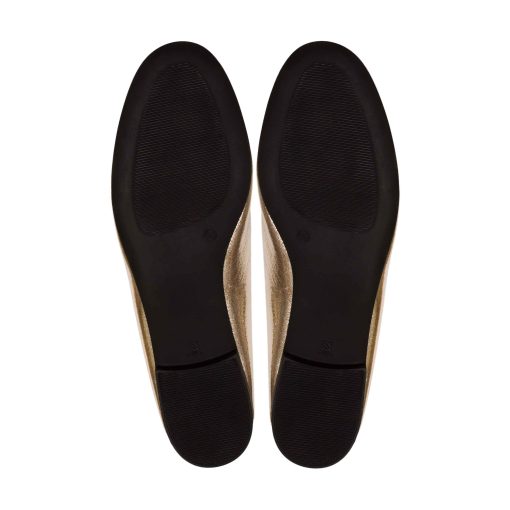 Вишукані жіночі лофери золотого кольору. Виконані з м’ягкої та еластичної шкірі. Конструкція данної моделі візуально робить іі більш стрункою та витонченою. Особливу увагу приділили матеріалу підошви, завдяки гнучкості та еластичності обраної гуми- лофери вийшли дуже комфортними, в них ногам зручно протягом всього дня.