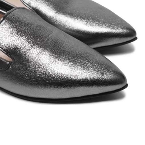 Вишукані жіночі лофери срібного кольору. Виконані з м’ягкої та еластичної шкірі. Конструкція данної моделі візуально робить іі більш стрункою та витонченою. Особливу увагу приділили матеріалу підошви, завдяки гнучкості та еластичності обраної гуми- лофери вийшли дуже комфортними, в них ногам зручно протягом всього дня.